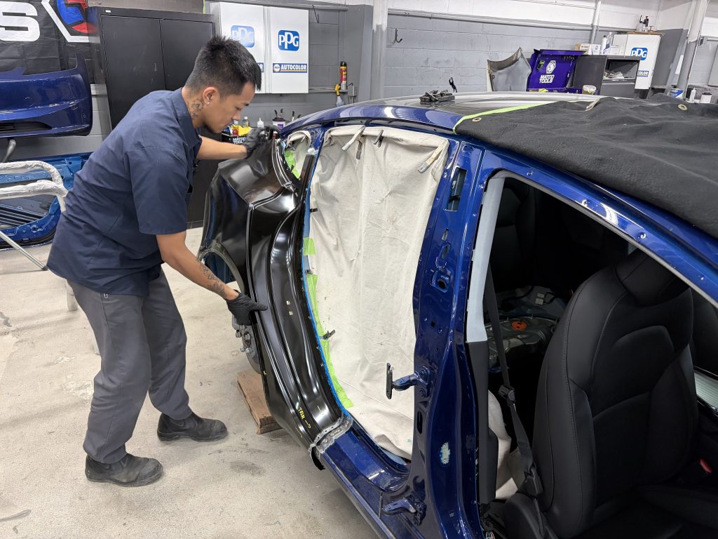Specialized training and advanced tooling allow the K.W. team to work on Tesla and other high-end vehicles with the precision they require. Premium automotive coatings from PPG Industries are used throughout the process, providing precise factory color matching and a durable, long-lasting finish.